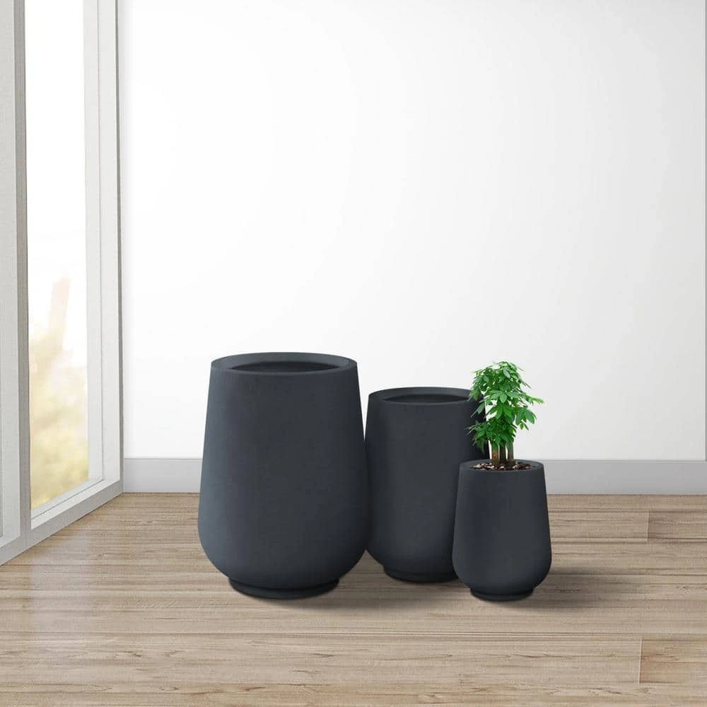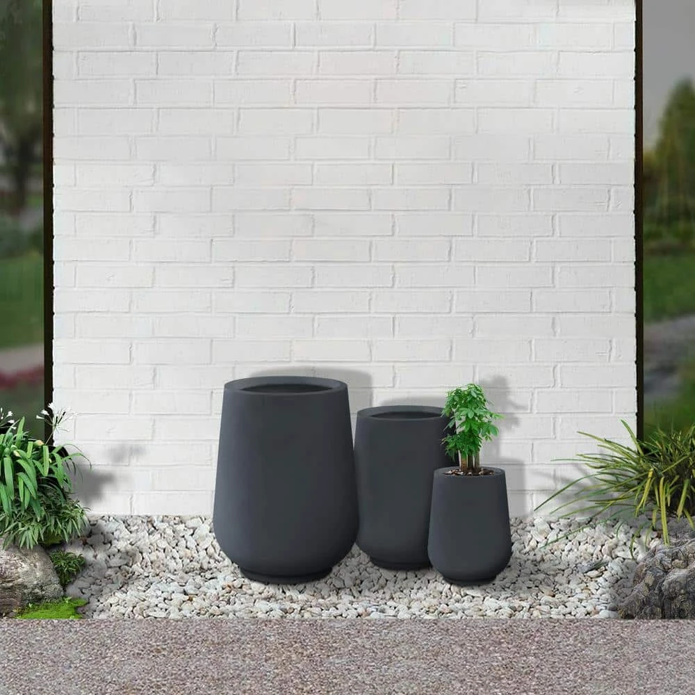 KANTE 26.5 in., 20 in. & 13.1 in. H Round Charcoal Concrete Tall Planters (Set of 3), Outdoor Indoor Large with Drainage Holes