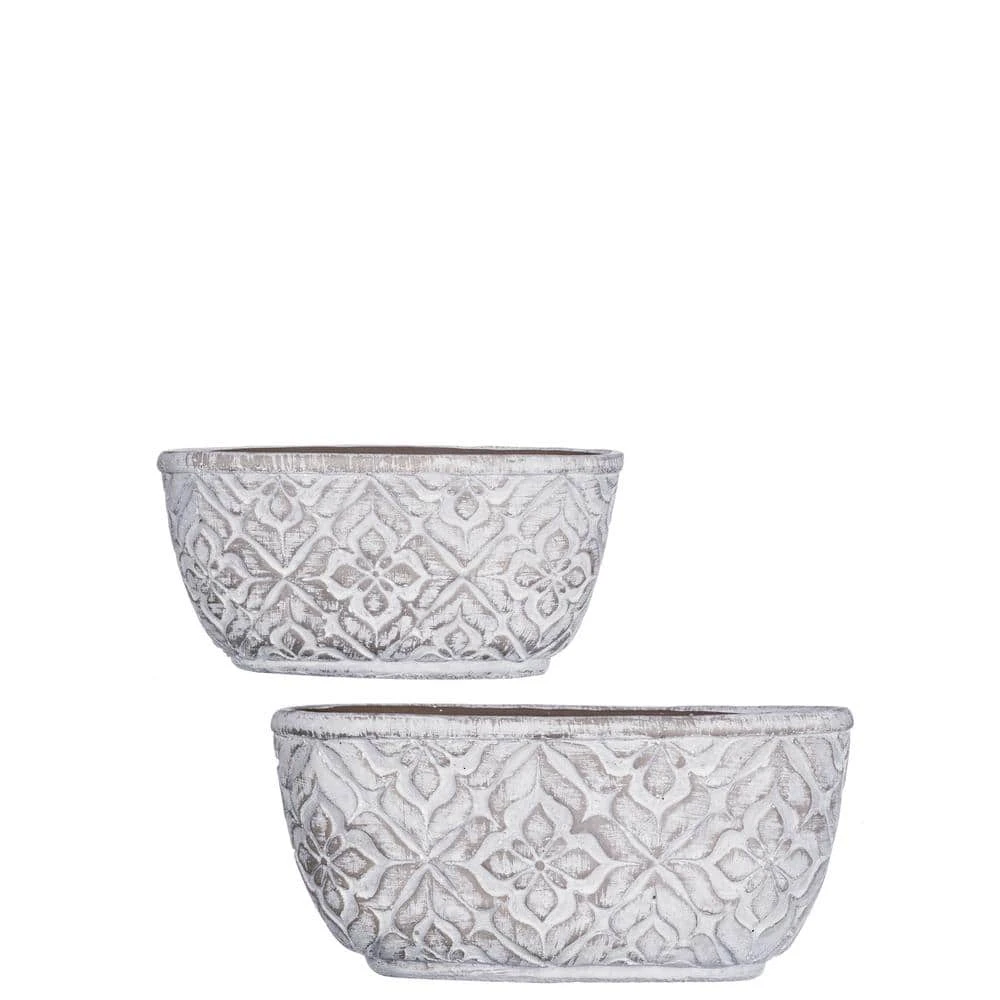 • Planters measure 8.5″L x 4.75″W x 4.25″H; 10.25″L x 6.25″W x 5″H