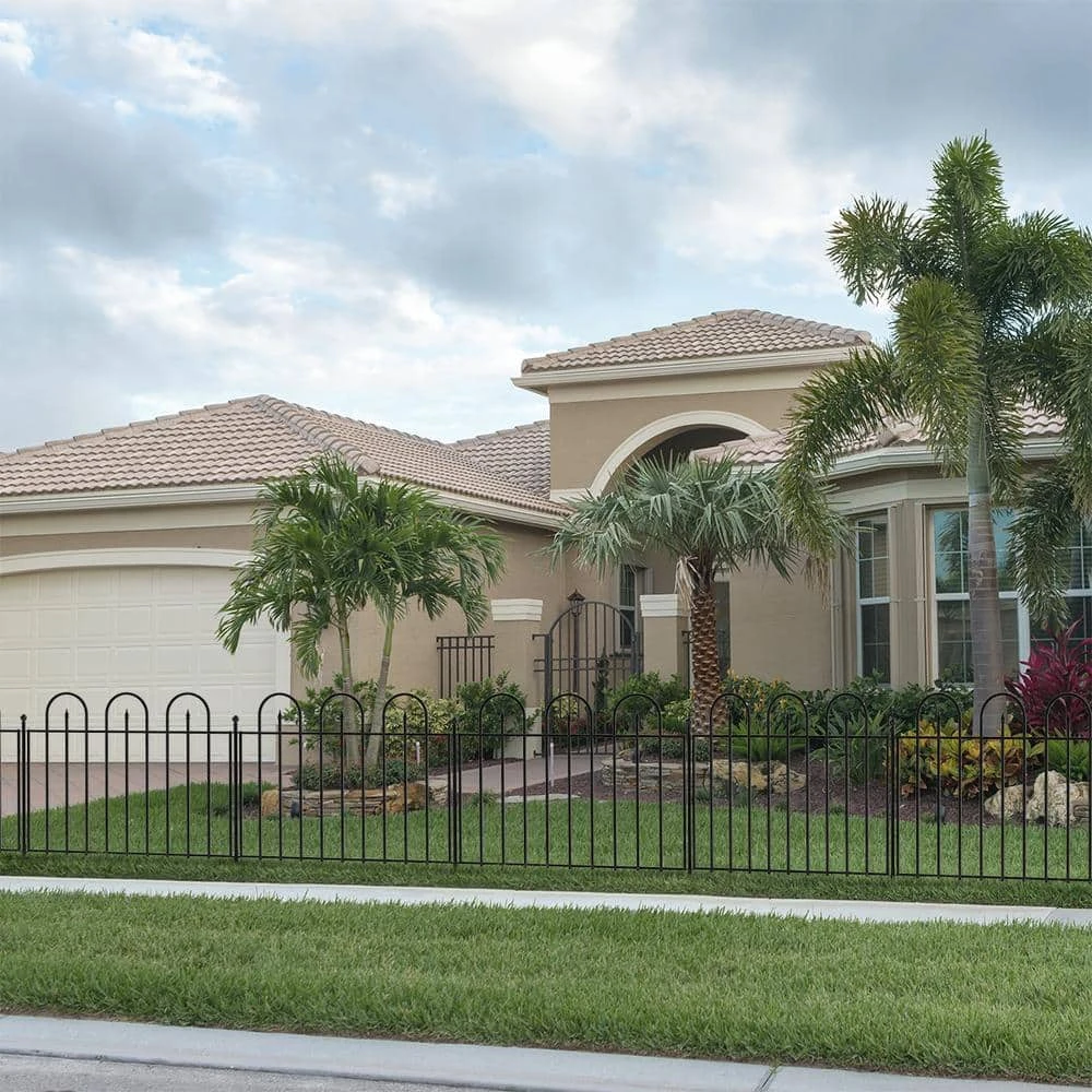 Black powder-coated steel decorative garden fence